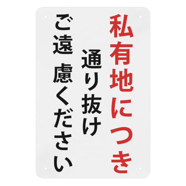 1枚 案内表示看板「私有地につき通り抜けご遠慮ください」注意看板 高耐候性金属プレート 30*20cm サインプレート 屋外対応
