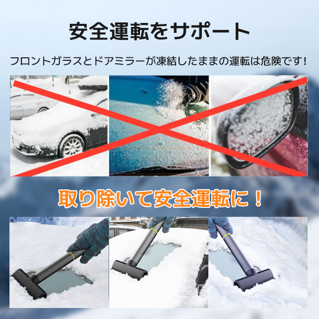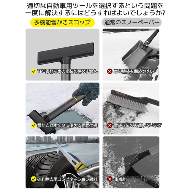 | 【幅広い用途】 | ◆この巧みに作られたシャベルで、車、セダン、SUV、RV、家の窓から簡単に除雪できる体験をしてください。冬の安全な帰宅に欠かせない味方 |