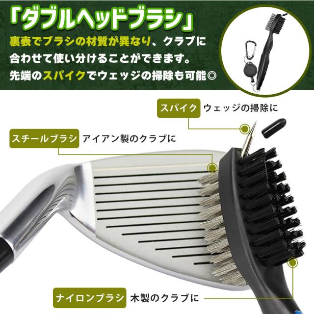 アイアン製のクラブにはスチールブラシ、木製のクラブにはナイロンブラシというように使い分けができます。
