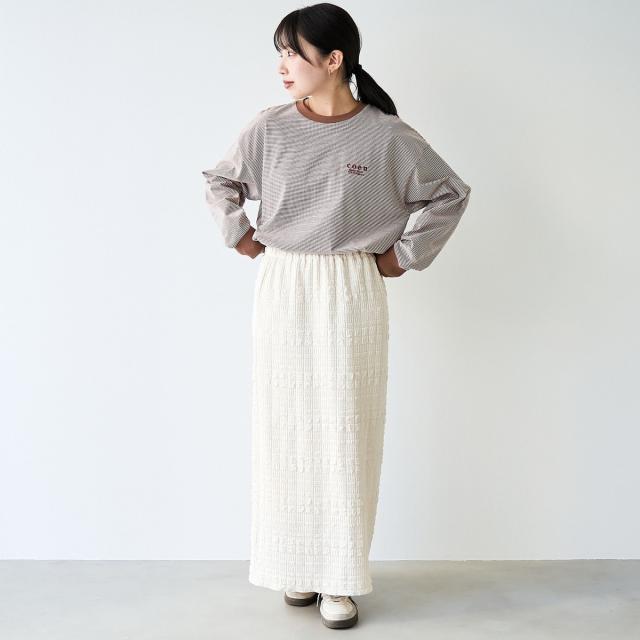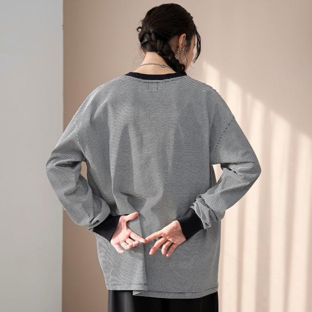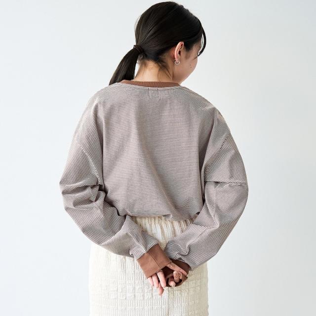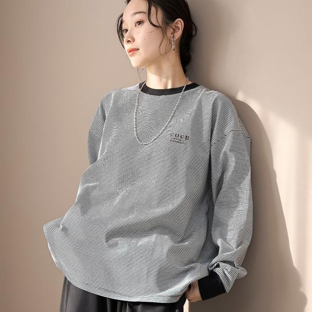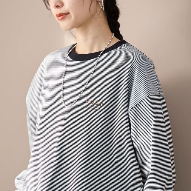 無地とボーダー生地のカラー展開。異なるカラーの刺繍を施し、1枚でもレイヤードでも活躍。