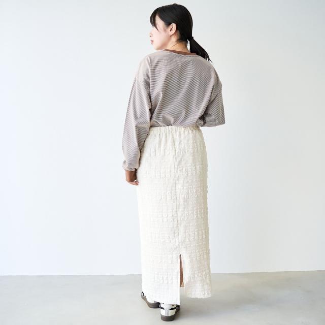 バルーンデニムやコクーンスカートなど、ジャンルを問わずどんなボトムにも合わせやすいアイテムです。