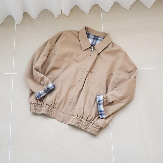 リバーシブルチェックブルゾン(ベージュ)