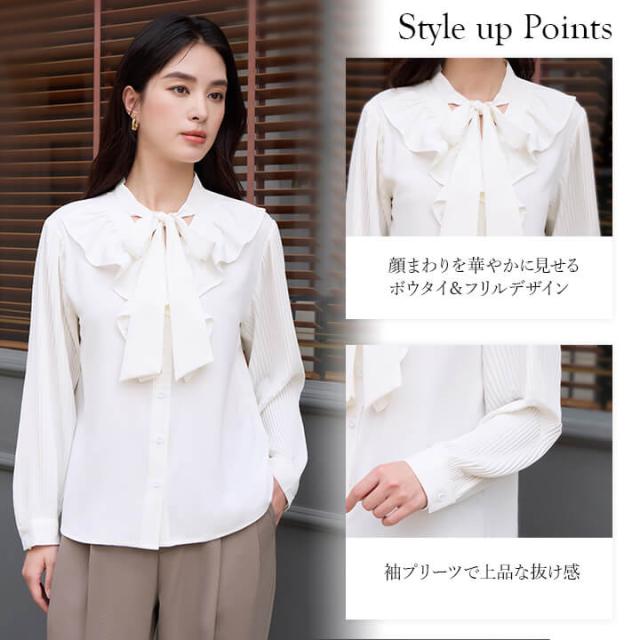 ボウタイフリルブラウス レディース トップス ボウタイフリル 可愛い きれいめ 長袖 おしゃれ ブラウス オフィス フォーマル カジュアル 大きいサイズ シンプル 大きめ ゆったり 大人 ママ 20代 30代 40代 50代 ギフト 普段使い 通年 オールシー