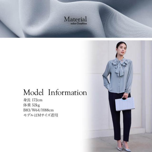 ■取扱商品の特徴: ボウタイフリルブラウス レディース トップス ボウタイフリル 可愛い きれいめ 長袖 おしゃれ ブラウス オフィス フォーマル カジュアル 大きいサイズ シンプル 大きめ ゆったり 大人 ママ 20代 30代 40代 50代 ギフト 普段使い 通年 オールシーズン オケージョン フォーマルシーン オフィスカジュアル エレガント M L XL 9号 11号 13号 ブラック グレーブルー ホワイト 黒 青灰 灰 白 yj188688