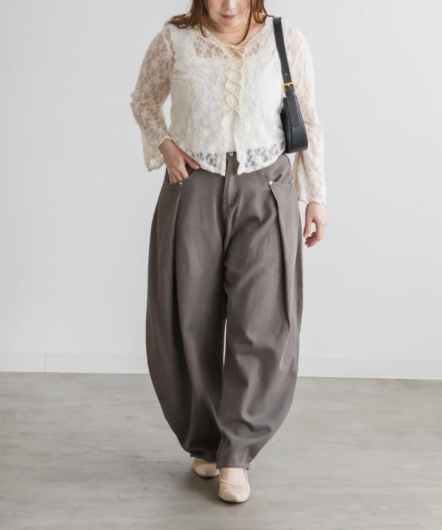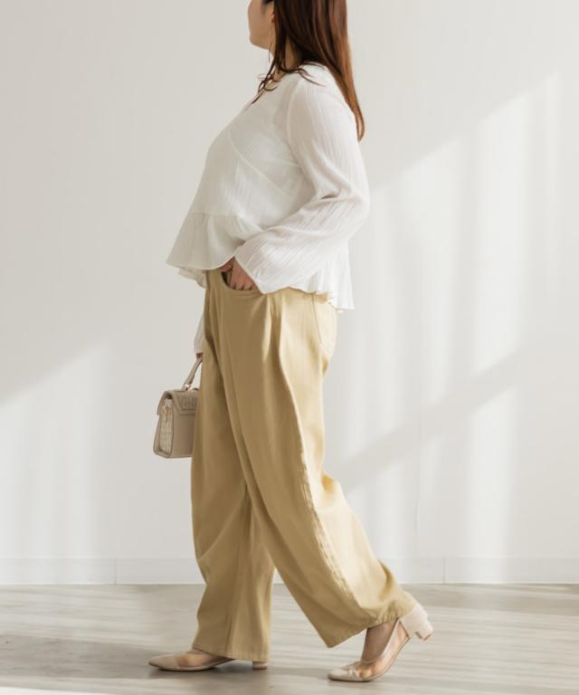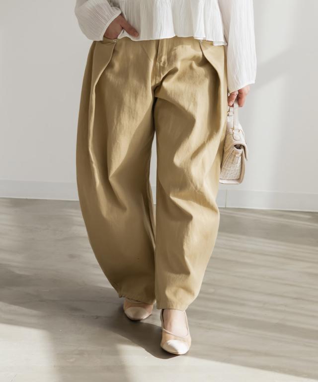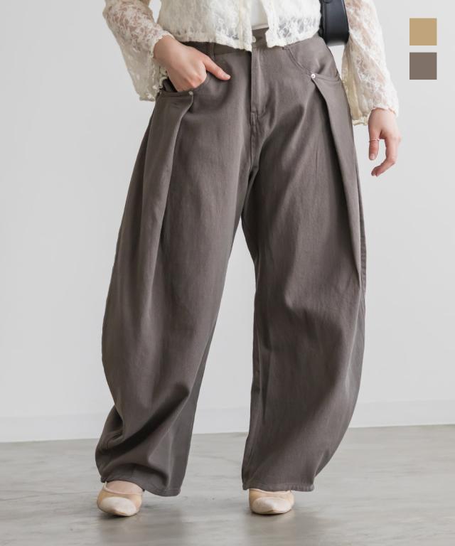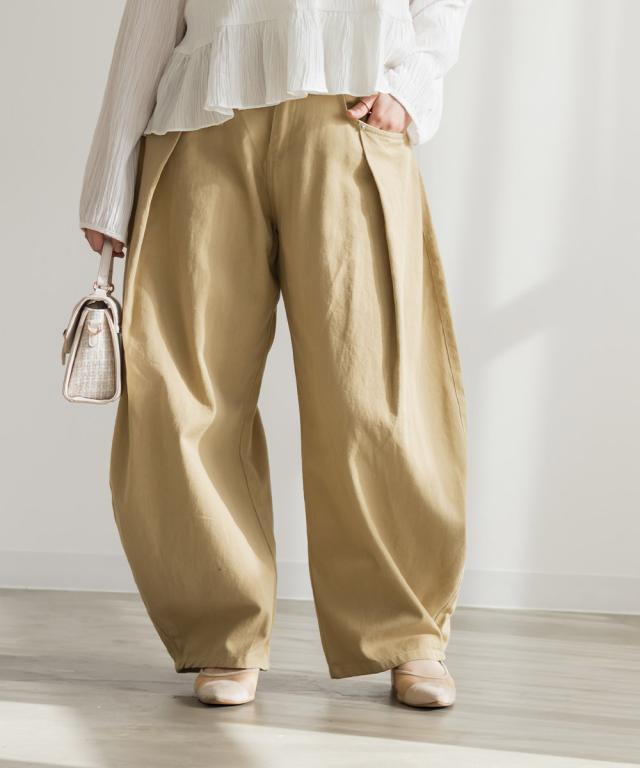 大きいサイズ/レディース/3L/4L/タックワイドバレルパンツ