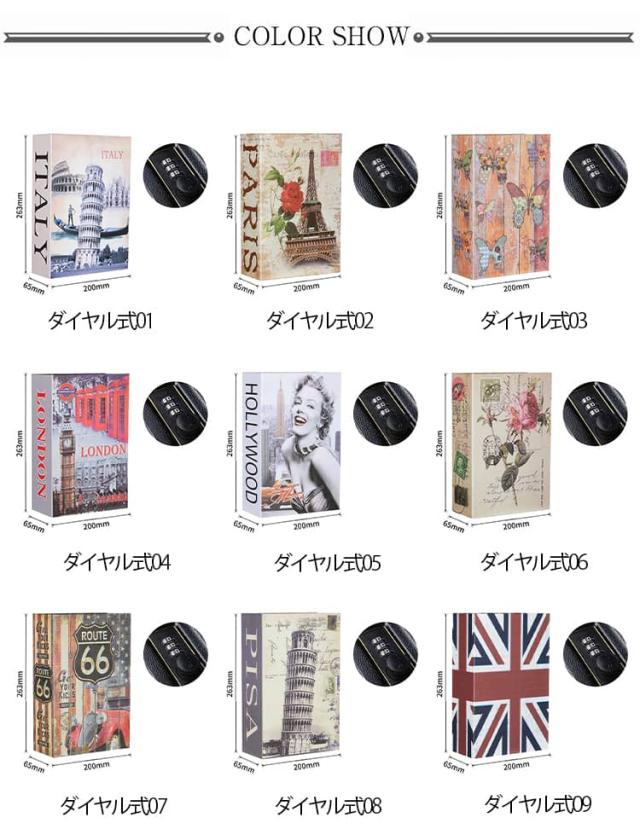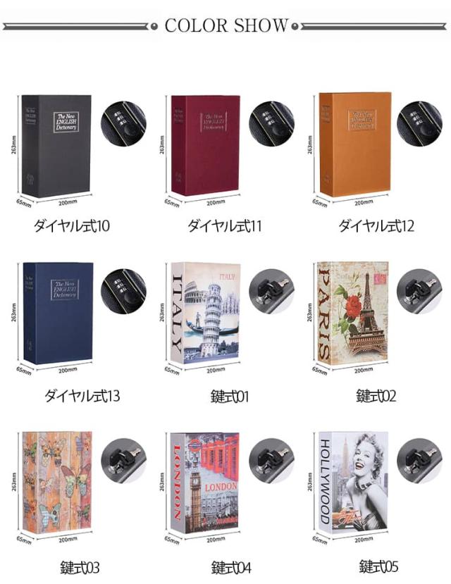 隠し金庫 ブック型 金庫 本型 小型金庫 本型金庫 小型 家庭用 セーフティーボックス かわいい おしゃれ ダイヤル式 キーロック 鍵付き 小物入れ 貯金箱 カギ 小物ケース 収納ボックス 貴重品入れ 防犯グッズ インテリア 雑貨