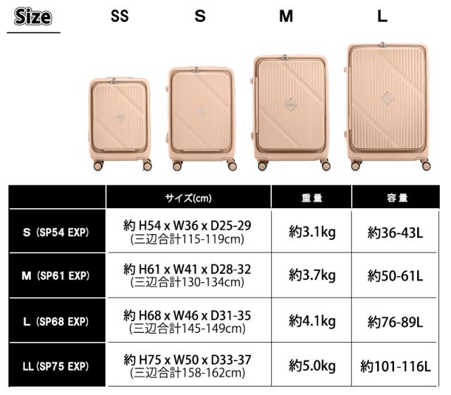 ※サイズ・重量・容量はメーカー公称値です。荷物の入れ方により前後する場合があります。