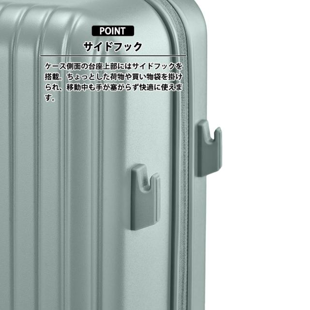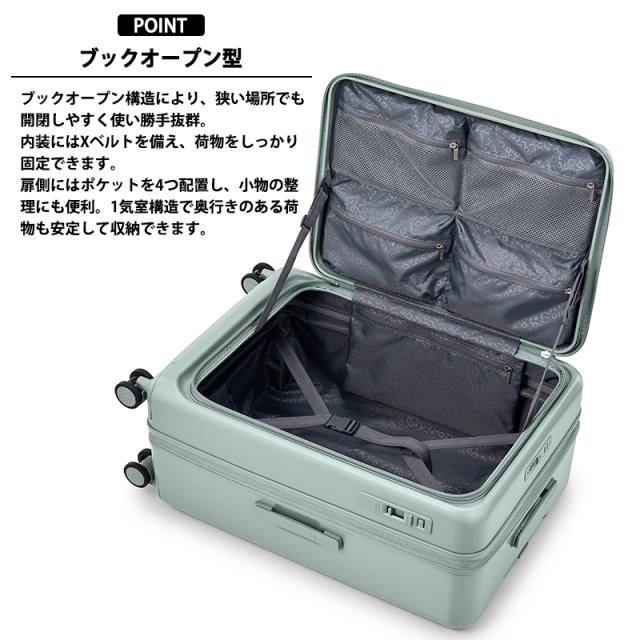中〜長期旅行向けサイズには、省スペースでも扱いやすいブックオープンタイプを採用し、ホテルのベッドや限られたスペースでも荷物の出し入れがしやすい構造です。