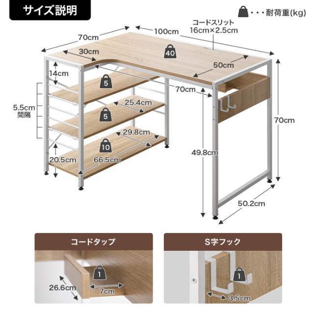 パソコンデスク PCデスク デスク 幅100cm 100cm L字デスク 作業台 左右組み換え 棚付き コンパクトデスク 新生活 一人暮らし 入学 【北海道・沖縄・離島配達不可】