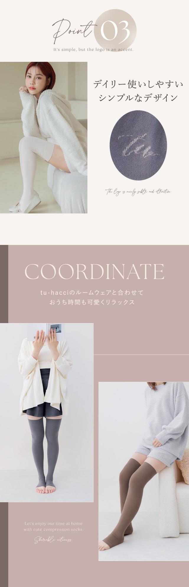 tu-hacci Legwear Collection キュッと実感、着圧スリムソックス 心地よい圧で引き締めて、むくみをすっきりケア。 かかとケア機能も備えた、レディース向けオリジナル着圧ソックスです。 就寝時はもちろん、デイリーにも取り入れやすく、24時間脚のケアをサポートします。 【こんな方におすすめ】 ・脚のむくみが気になる ・朝起きたとき、脚の重さを感じやすい ・手軽にかかとケアも取り入れたい ・おしゃれに履ける夜用着圧ソックスを探している ■機能性も見た目も大切に ・程よい着圧設計で、足首から太ももまでやさしくむくみケア ・内側に施したシリコンシートで、かかとを保湿 ・薄手仕様で、上から靴を履いての着用もOK ・デイリー使いにうれしい、シンプルデザイン&ニュアンスカラー ・安心の日本製 ※本製品はニーハイソックス(ロング丈・太もも丈)です。 ≫ ギフトラッピングはこちら ≪ |