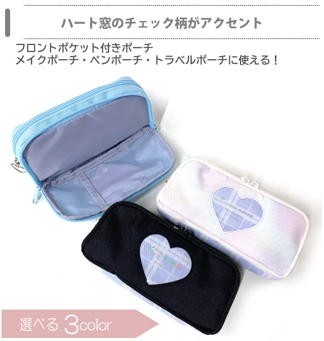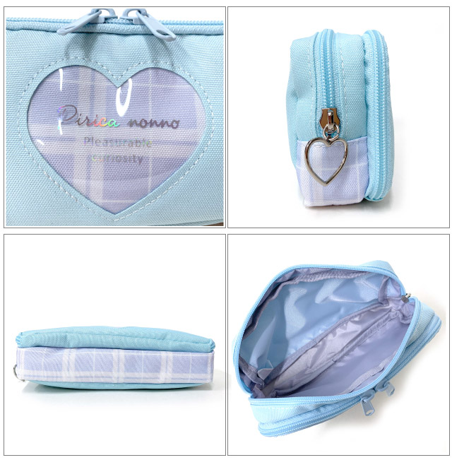ポーチ かわいい 大きめ Pirica nonno グラデチェック WFペンポーチ hbe-432 ペンケース 中学生 大容量 小物入れ おしゃれ ペンポーチ 子供 筆箱 メイクポーチ 機能的 トラベルポーチ 2ルーム 小学生 高学年 ハート 小4 小5 人気 黒 水色 旅行 紫 ファスナーポーチ 文房具