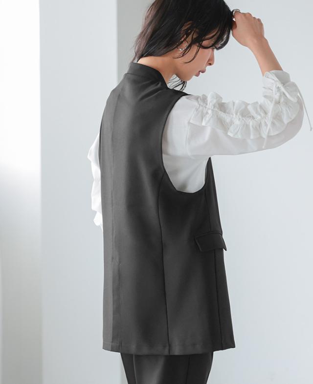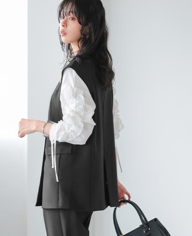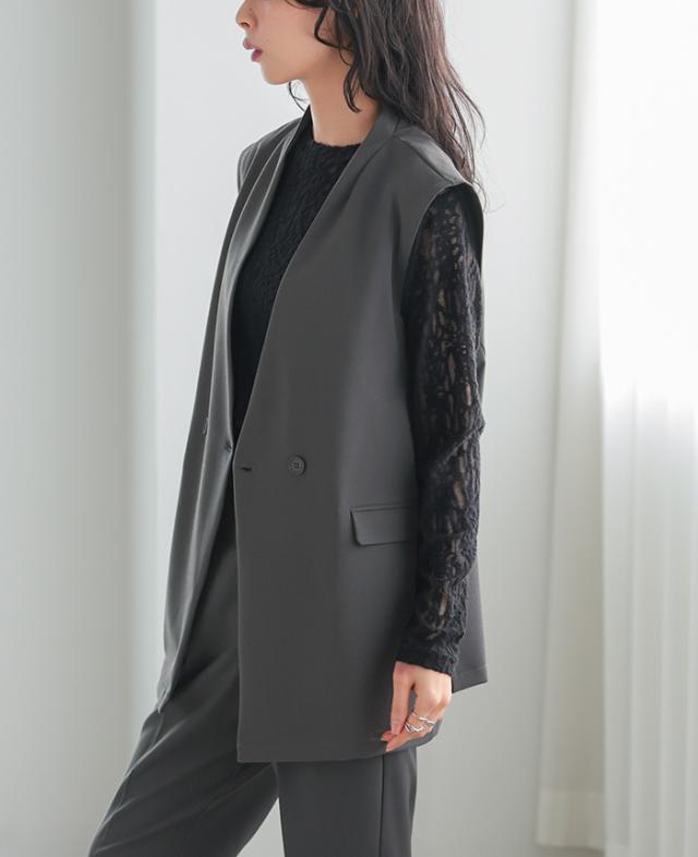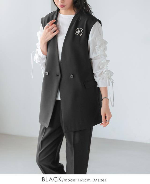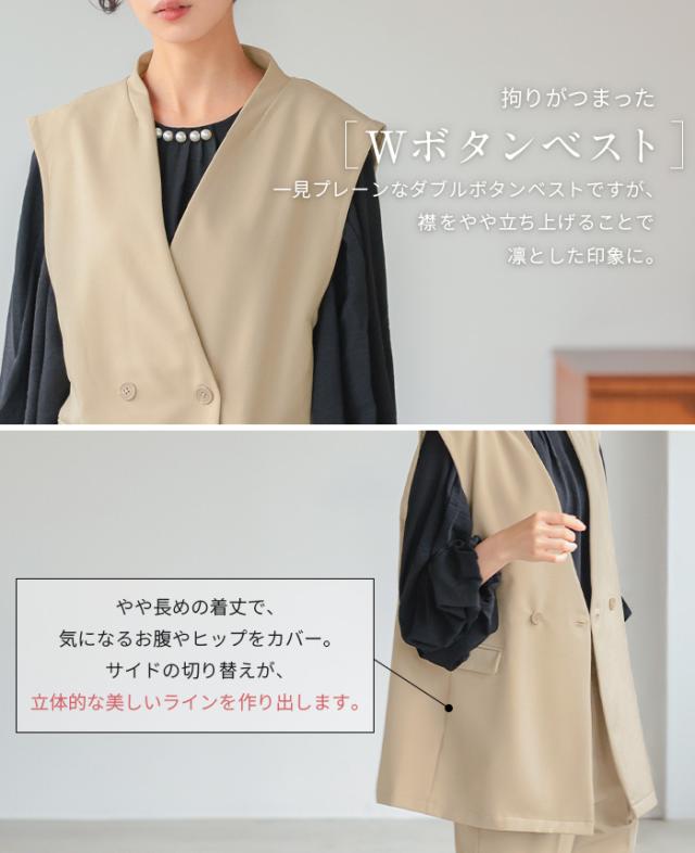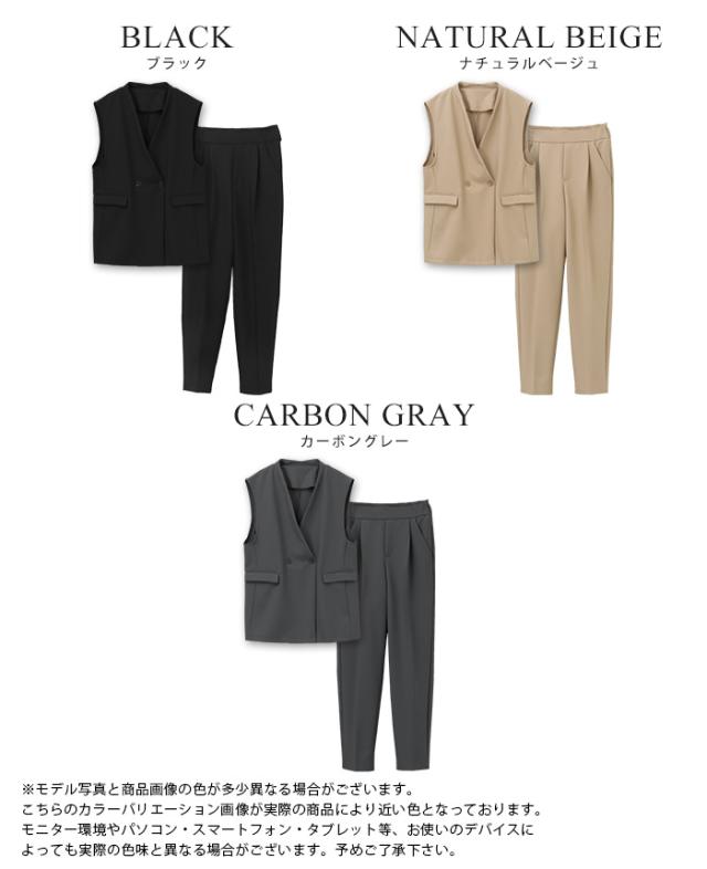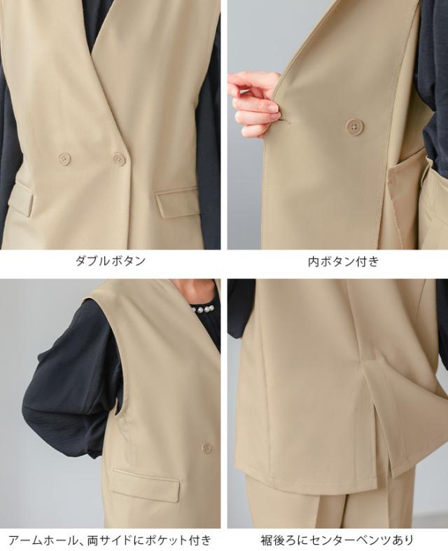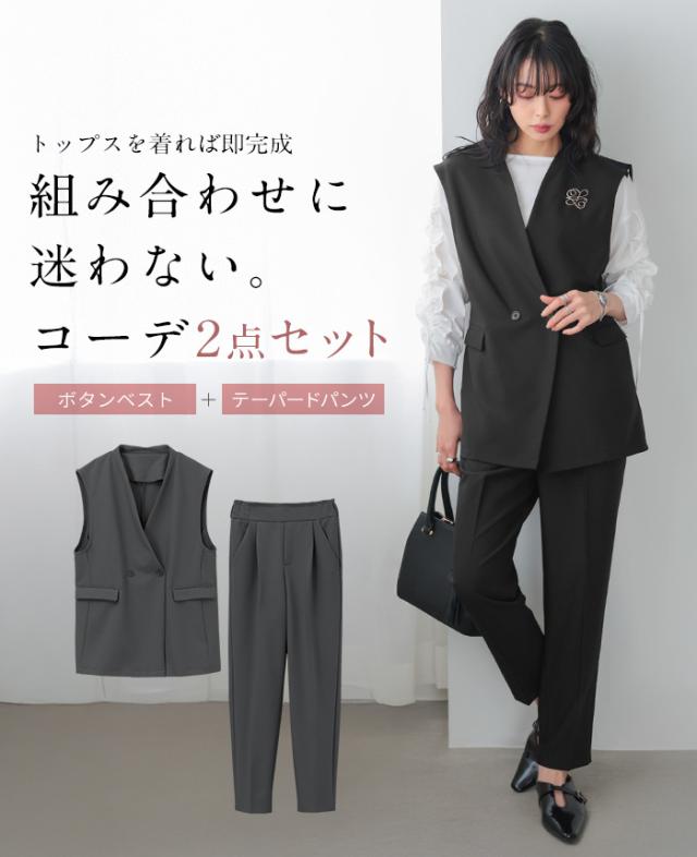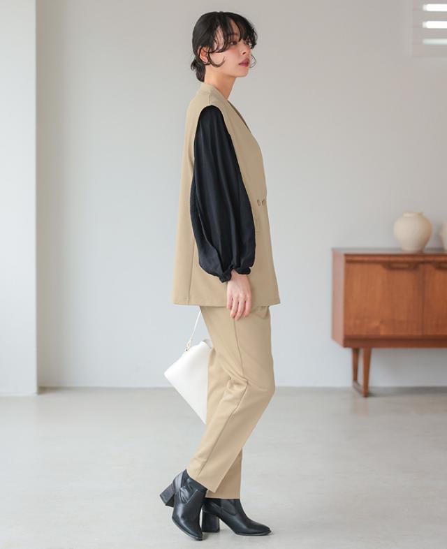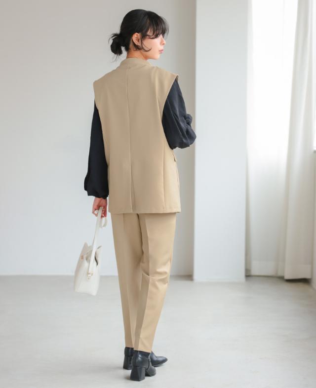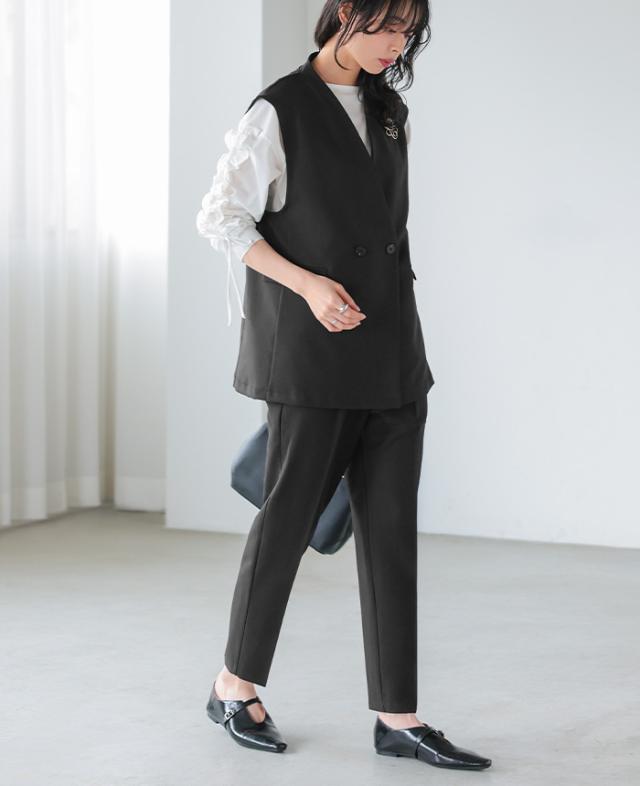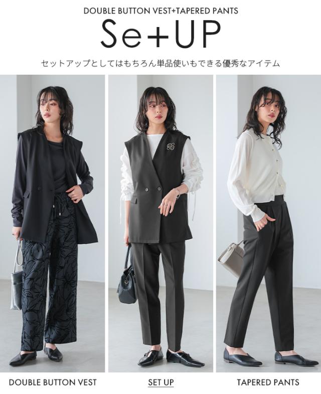 [新作限定P10%×送料無料]ダブルボタンベスト&テーパードパンツセットアップ【メール便不可】