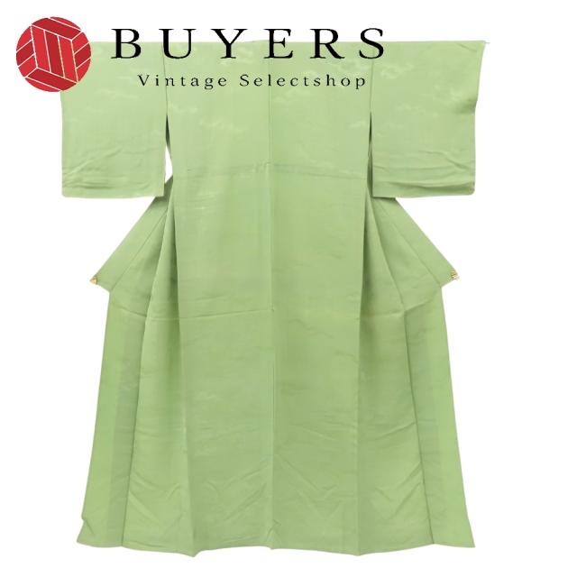 中古 色無地 正絹 グリーン 単衣 バチ襟 和装 呉服 和服 きもの レディース 女性