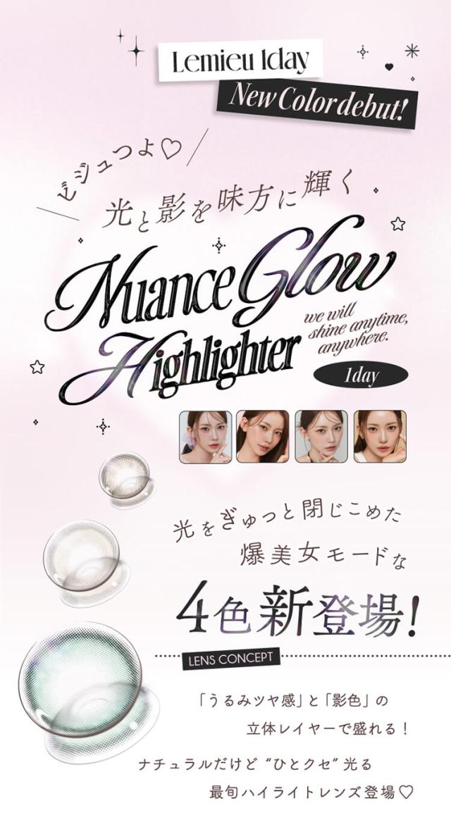 | ●商品ポイント | “光と影を味方に輝く” 光と影が重なり合う時、個性はそっと輝きはじめる。 「うるみツヤ感」と「影色」の立体レイヤーで盛れる! ナチュラルだけど“ひとクセ”光る、最旬ハイライトレンズ登場♡ |