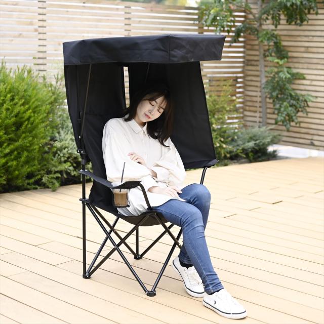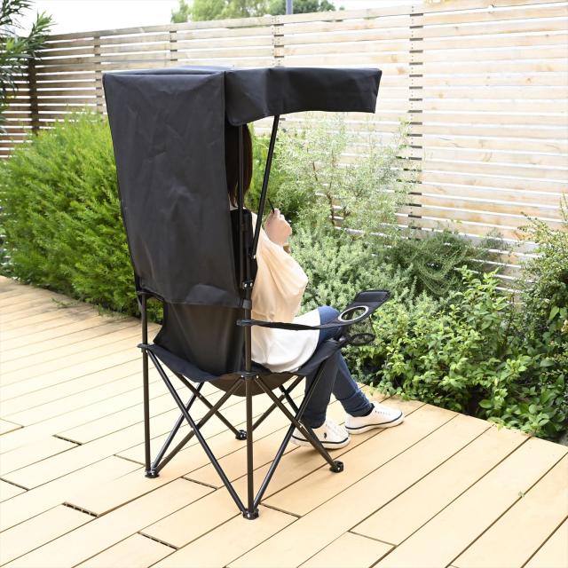 アウトドアチェア 日よけ 屋根 折りたたみ シェード付きチェア SP-210(BK) キャンプ アウトドア 椅子 折りたたみチェア ひさし付きチェア 日除け スポーツ観戦 山善 YAMAZEN キャンパーズコレクション 【送料無料】