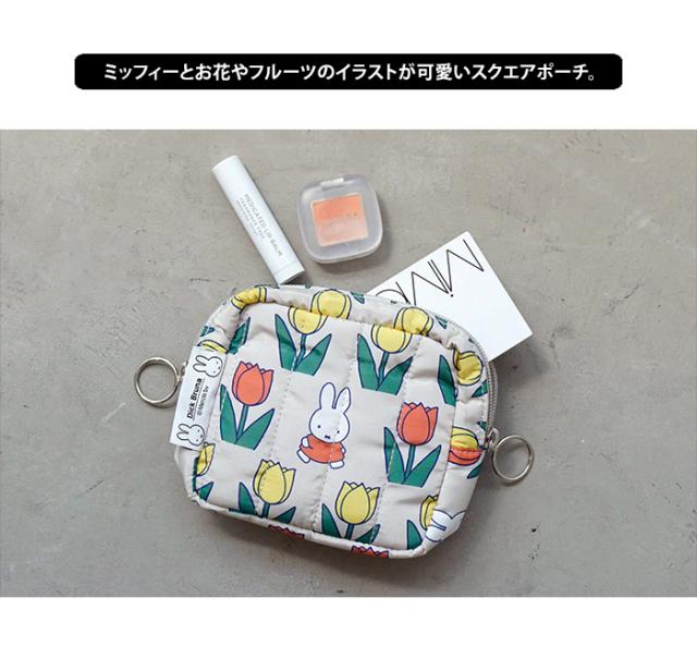 メール便送料無料 miffy ミッフィー Dick Bruna キルティングスクエアポーチ 【 ポーチ キャラクター レディース 小さめ 小物入れ 可愛い メイクポーチ 化粧ポーチ 便利 イラスト プリント キルティング おしゃれ 旅行 総柄 ギフト プレゼント】