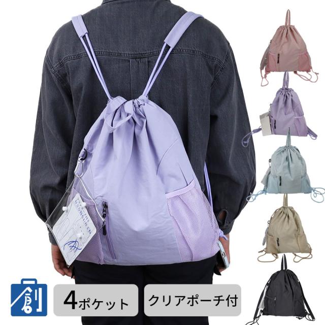 ナップサック 女の子 男の子 体操服入れ 部活 巾着袋 レディース メンズ 軽量 a4 サブバッグ 通学 お出かけ スポーツ ジム スイミング 子供 大人 シンプル おしゃれ 無地 クリアポーチ付ナップサック MTB-3081