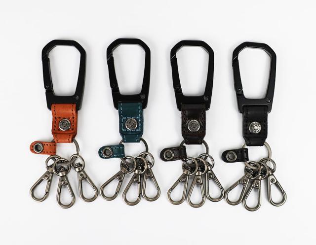 カラビナでパンツのベルトループに付けたり、バッグに付けたりできるキーホルダーです。フックは3つついています。ホールのパーツにはカラビナが付いているAir Tagケースなどを取り付けるのに便利です。