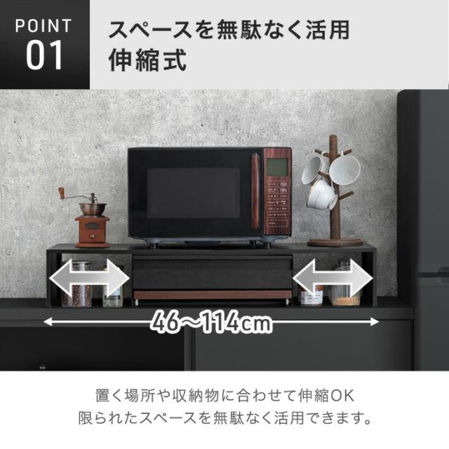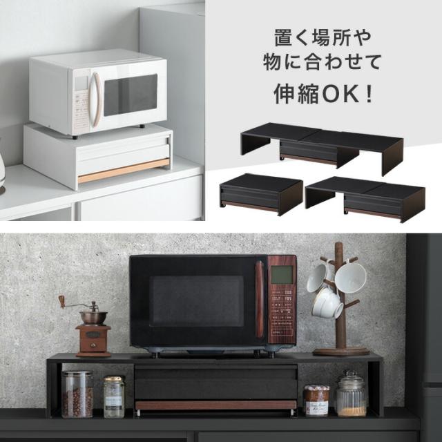 伸縮 家電下 ラック 家電下収納 引き出し スライドテーブル 省スペース 伸縮式 家電下ラック 家電下引き出し 家電下スライドテーブル レンジ台 レンジ下 キッチンラック レンジラック キッチン収納 キッチン 木目 黒 白 おしゃれ