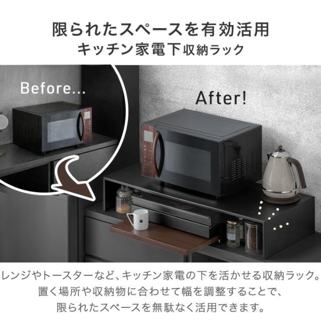 伸縮 家電下ラック 家電下引き出し 家電下スライドテーブル レンジ下スライドテーブル 家電下 ラック キッチンラック トースターラック オーブンラック レンジ下ラック 台所 収納