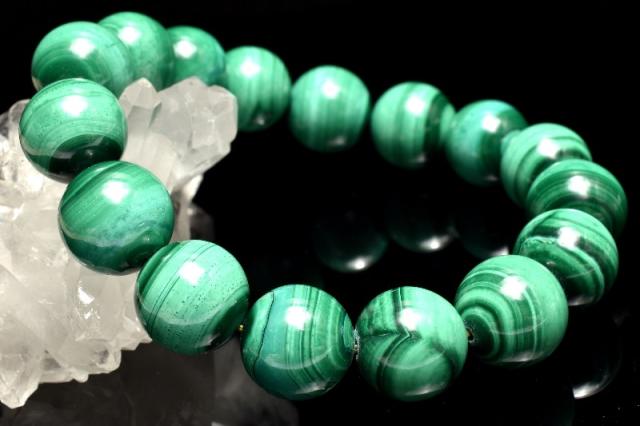 【1点物】美麗◇縞模様 マラカイト(孔雀石) 13-13.5mm ブレスレット 金運・仕事運・厄除け_MC3647