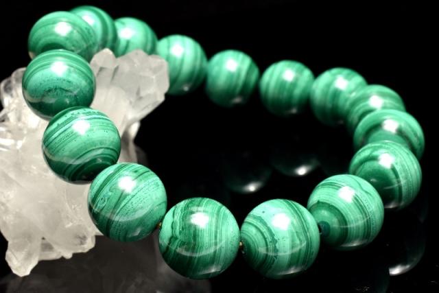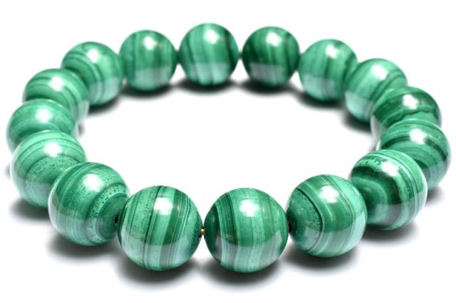 【1点物】美麗◇縞模様 マラカイト(孔雀石) 13mm ブレスレット 金運・仕事運・厄除け_MC3648