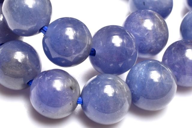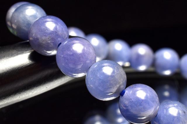 | 特徴・意味 | タンザナイト特有の神秘的な美しい青紫系のお色味です。 やや濃い目の珠や、透過性がある珠も含まれており光沢もございます。 タンザナイトは、鉱物的には青色をしたゾイサイトです。 タンザナイトという名前は、有名なアメリカの宝石商、ティファニーによってつけられたコマーシャルネームです。 タンザナイトは多色性を持つ石で、見る角度や、条件下によって色を変える石です。 昼の自然光の中では鮮やかなブルーに、そして夜の光や人工的な光の下ではパープルがかって見える特徴を持っています。 主な発色要因は微量に含まれたバナジウムによるもので、色の濃い物には微量の酸化クロムが含まれています。 タンザナイトは、見る角度によりブルー・グリーン・パープル・イエローと様々な色合い変化します。 殆どのものが加熱処理されています。 |