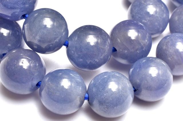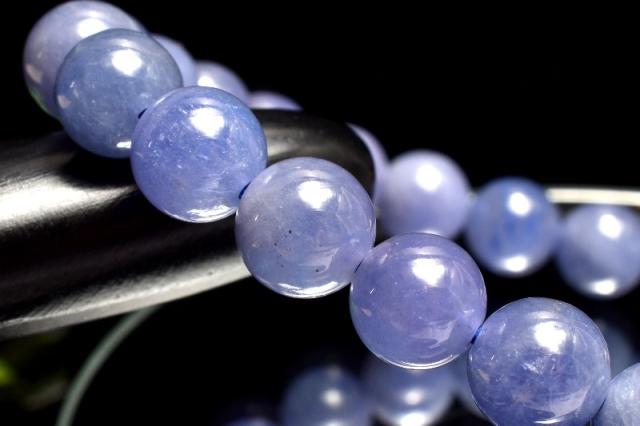 | 特徴・意味 | タンザナイト特有の神秘的な美しい青紫系のお色味です。 やや濃い目の珠や、透過性がある珠も含まれており光沢もございます。 タンザナイトは、鉱物的には青色をしたゾイサイトです。 タンザナイトという名前は、有名なアメリカの宝石商、ティファニーによってつけられたコマーシャルネームです。 タンザナイトは多色性を持つ石で、見る角度や、条件下によって色を変える石です。 昼の自然光の中では鮮やかなブルーに、そして夜の光や人工的な光の下ではパープルがかって見える特徴を持っています。 主な発色要因は微量に含まれたバナジウムによるもので、色の濃い物には微量の酸化クロムが含まれています。 タンザナイトは、見る角度によりブルー・グリーン・パープル・イエローと様々な色合い変化します。 殆どのものが加熱処理されています。 |