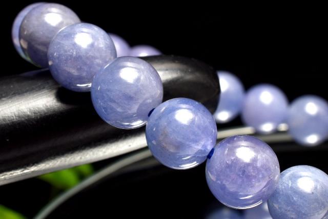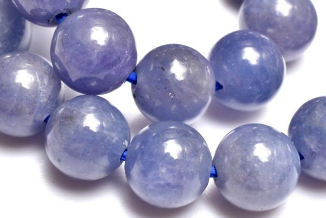 | 特徴・意味 | タンザナイト特有の神秘的な美しい青紫系のお色味です。 やや濃い目の珠や、透過性がある珠も含まれており光沢もございます。 タンザナイトは、鉱物的には青色をしたゾイサイトです。 タンザナイトという名前は、有名なアメリカの宝石商、ティファニーによってつけられたコマーシャルネームです。 タンザナイトは多色性を持つ石で、見る角度や、条件下によって色を変える石です。 昼の自然光の中では鮮やかなブルーに、そして夜の光や人工的な光の下ではパープルがかって見える特徴を持っています。 主な発色要因は微量に含まれたバナジウムによるもので、色の濃い物には微量の酸化クロムが含まれています。 タンザナイトは、見る角度によりブルー・グリーン・パープル・イエローと様々な色合い変化します。 殆どのものが加熱処理されています。 |