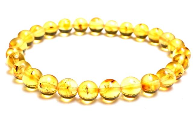 【1点物】全粒内包☆限定入荷! 虫入り琥珀アンバー 7mm ブレスレット 健康運・金運・仕事運【ネコポス送料無料】_MC3932