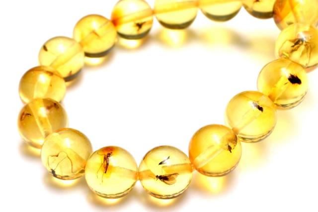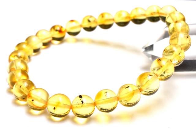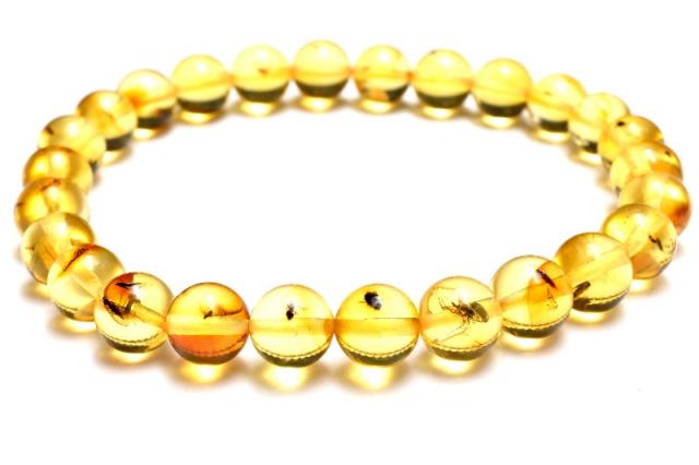 【1点物】全粒内包☆限定入荷! 虫入り琥珀アンバー 7.5mm ブレスレット 健康運・金運・仕事運【ネコポス送料無料】_MC3935