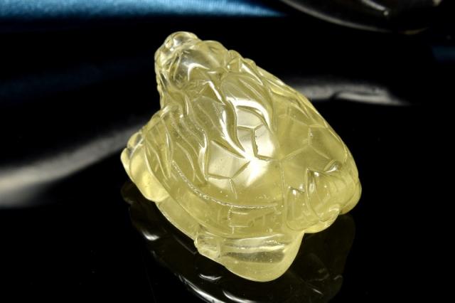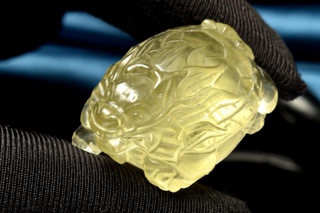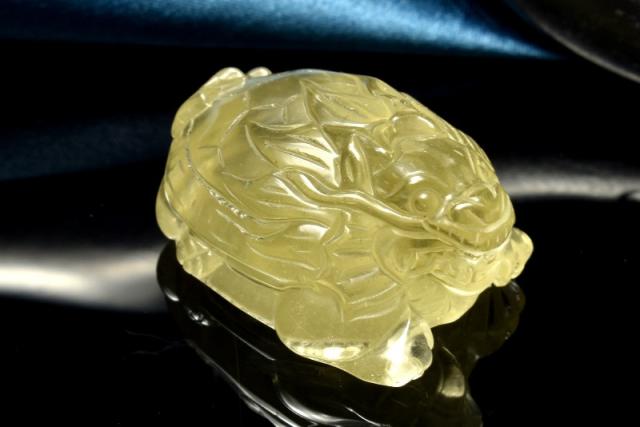 【1点物】AAA+☆繊細彫刻 リビアングラス 33x24mm 龍亀 置物 金運・仕事運【ネコポス送料無料】_PC8707