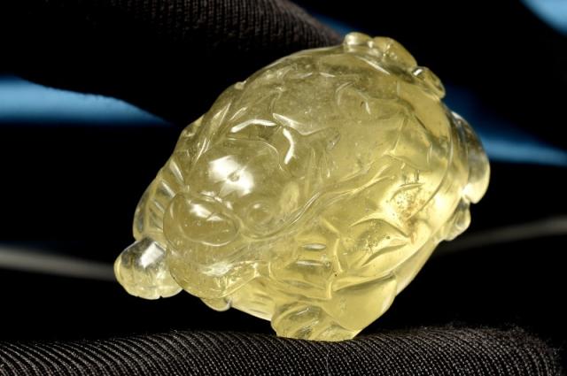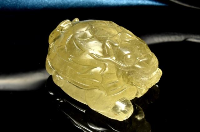 【1点物】AAA+☆繊細彫刻 リビアングラス 34x26mm 龍亀 置物 金運・仕事運【ネコポス送料無料】_PC8709