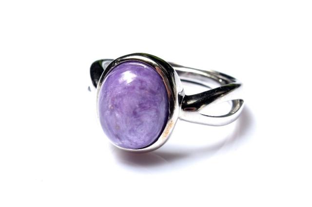 | 特徴・意味 | マーブル模様の紫カラーがたまらなくセクシーで上品です。 インクルージョン(黒点)もほぼ見受けられず艷やかな指輪です。 「チャロアイト」は、「スギライト」や「ラリマー」と同じく、世界三大ヒーリングストーンの一つに数えられる石です。油彩画のような質感を持つ芸術的な印象を持つ石で、この不思議な模様は、黒色:エジリン(Aegirine錐輝石)、帯状の灰色:マイクロクリン(Microcline微斜長石)、白色:カリ長石(PotassiumFeldspar)、黄緑色:カナサイト(Canasite)、淡黄色:ティクナクサイト(Tinaksite)などの鉱物が、マーブル状に混ざりあうことから成り立っています。薄紫色の彩色は不純物のマンガンに起因します。 チャロアイトという名前の由来には、シベリアのチャロ川流域で発見された事とする説と、ロシア語の(Charo魅惑)から名づけられたという説がありますが、後者の方が有力であるとされています。その名の通り、この石の個性的な模様は、見る人を魅了してやみません。まさに、「魅惑の宝石」にぴったりな石です。 |