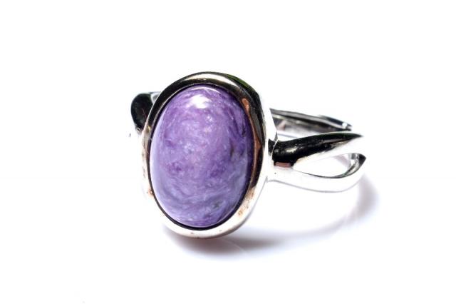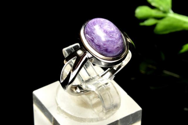 | 特徴・意味 | マーブル模様の紫カラーがたまらなくセクシーで上品です。 インクルージョン(黒点)もほぼ見受けられず艷やかな指輪です。 「チャロアイト」は、「スギライト」や「ラリマー」と同じく、世界三大ヒーリングストーンの一つに数えられる石です。油彩画のような質感を持つ芸術的な印象を持つ石で、この不思議な模様は、黒色:エジリン(Aegirine錐輝石)、帯状の灰色:マイクロクリン(Microcline微斜長石)、白色:カリ長石(PotassiumFeldspar)、黄緑色:カナサイト(Canasite)、淡黄色:ティクナクサイト(Tinaksite)などの鉱物が、マーブル状に混ざりあうことから成り立っています。薄紫色の彩色は不純物のマンガンに起因します。 チャロアイトという名前の由来には、シベリアのチャロ川流域で発見された事とする説と、ロシア語の(Charo魅惑)から名づけられたという説がありますが、後者の方が有力であるとされています。その名の通り、この石の個性的な模様は、見る人を魅了してやみません。まさに、「魅惑の宝石」にぴったりな石です。 |
