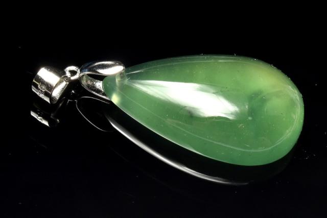 【1点物】シルバー925◇とろみグリーン サーペンティン 28x18mm ドロップ ペンダントトップ 厄除け_PC8816