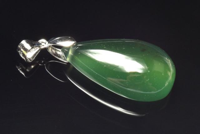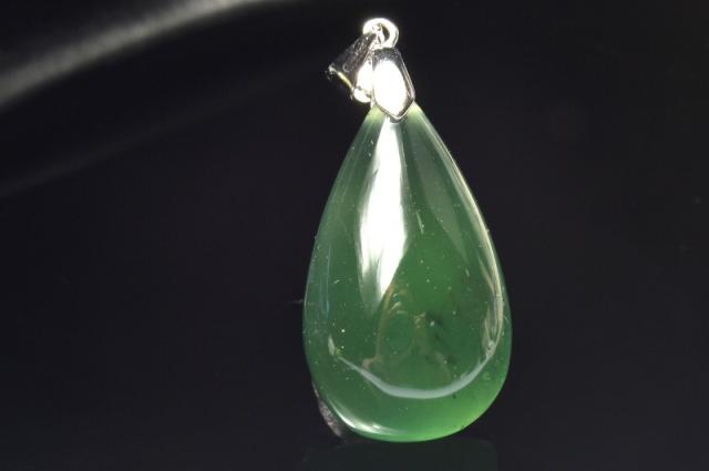 【1点物】シルバー925◇とろみグリーン サーペンティン 26x15mm ドロップ ペンダントトップ 厄除け_PC8818