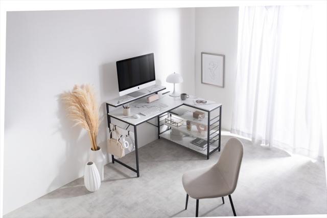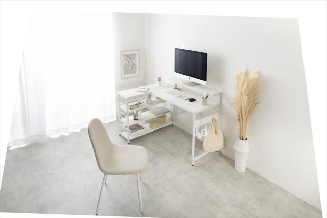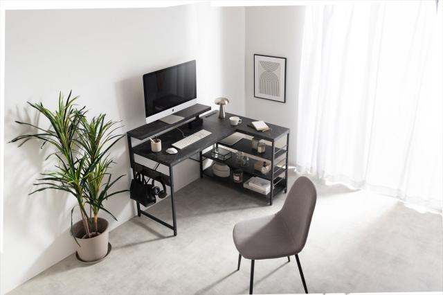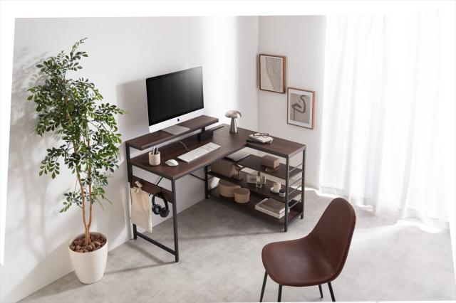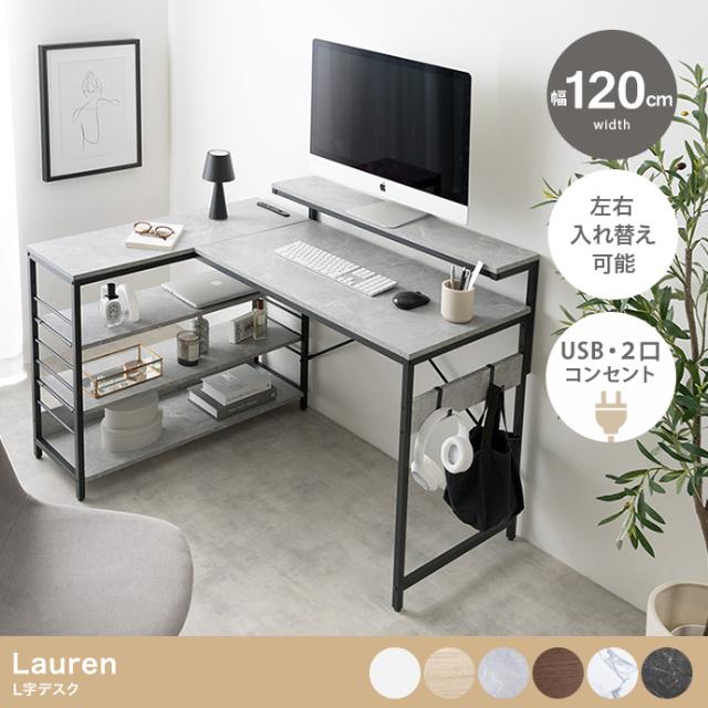 パソコンデスク PCデスク デスク 幅120cm 120cm L字デスク 作業台 USBコンセント付き 2口コンセント付き 左右組み換え 棚付き コンパクトデスク 新生活 一人暮らし 入学 【北海道・沖縄・離島配達不可】