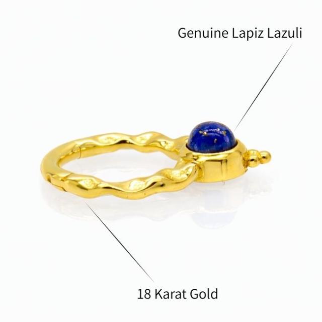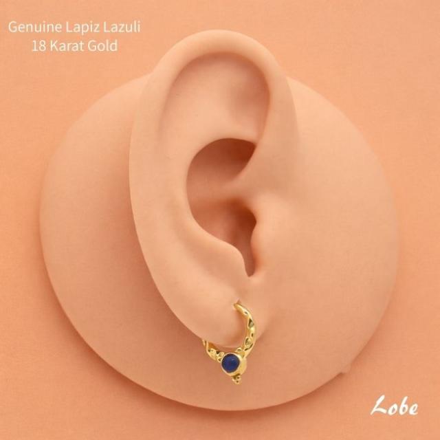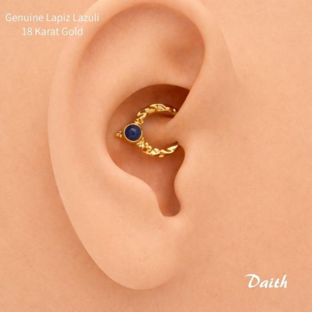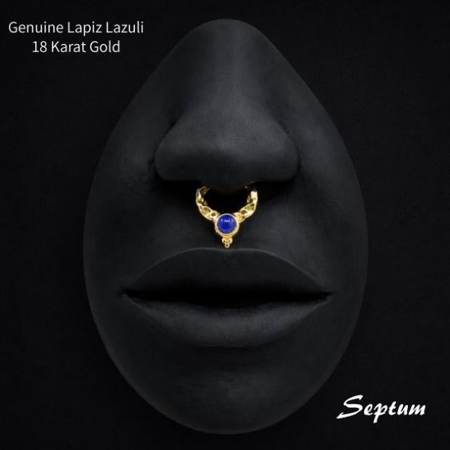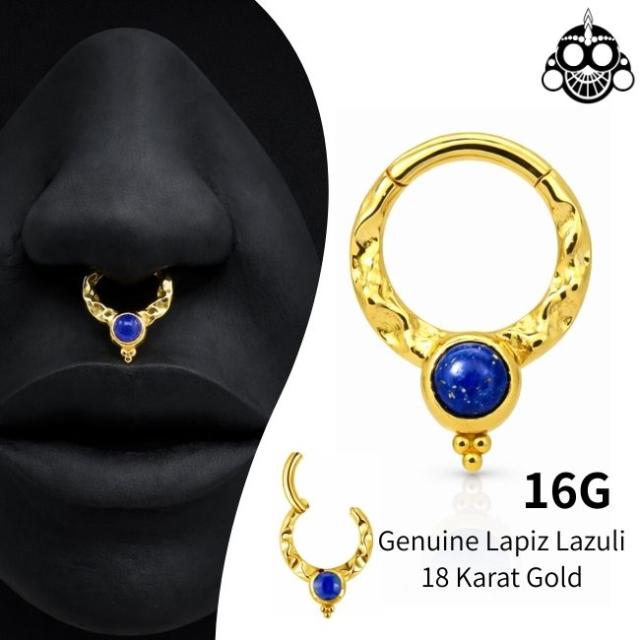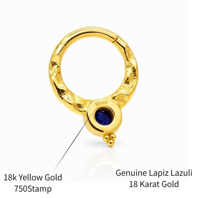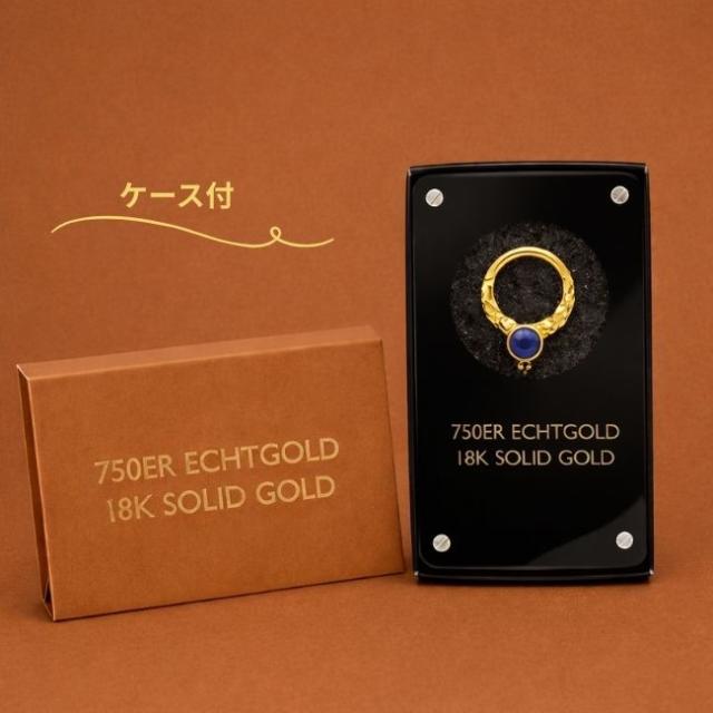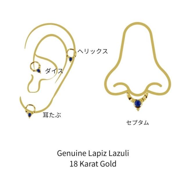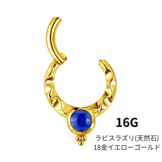 K18 16g 18金ゴールド ラピスラズリ 天然石 V字 18K 金属アレルギー対応 セグメントリングピアス クリッカー リングピアス ロブ セプタム ダイス ボディピアス