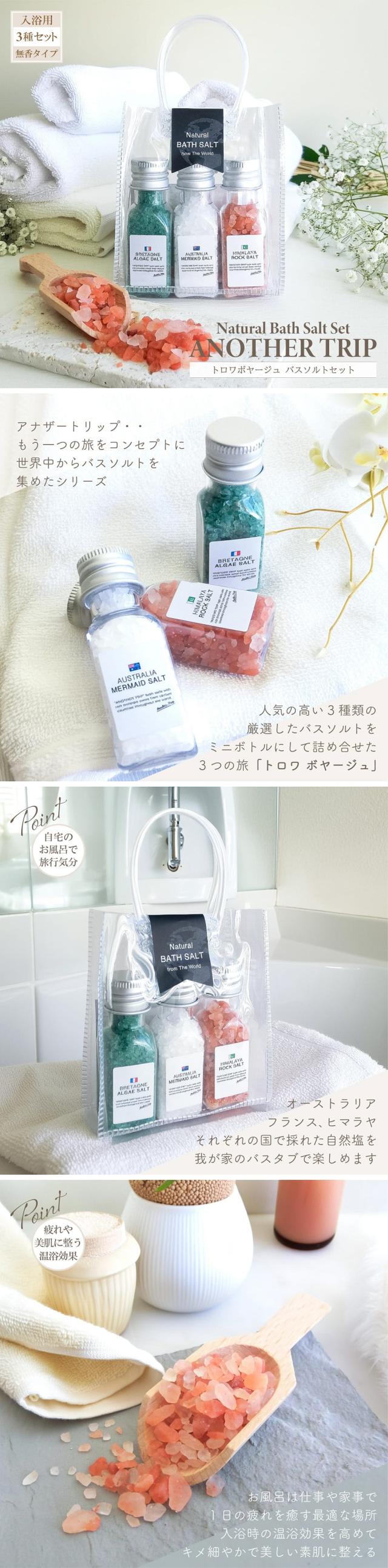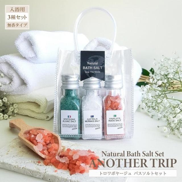 入浴剤 アナザートリップ NA トロワボヤージュ バスソルト 3種セット ミニバッグ入り 無香料 詰め合わせ 入浴約3回分 ナチュラル 各国原産の塩 岩塩 焼き塩 天日塩 自然塩 入浴用 風呂 美肌 保湿 母の日 プレゼント ギフト おしゃれ かわいい