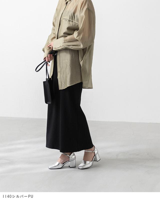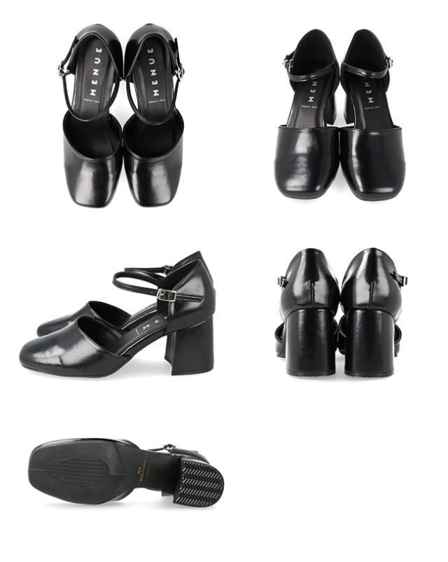 スクエアトゥと台形ヒールが存在感を放ち、ストラップ付だから脱げる心配も無く安心の一足です。