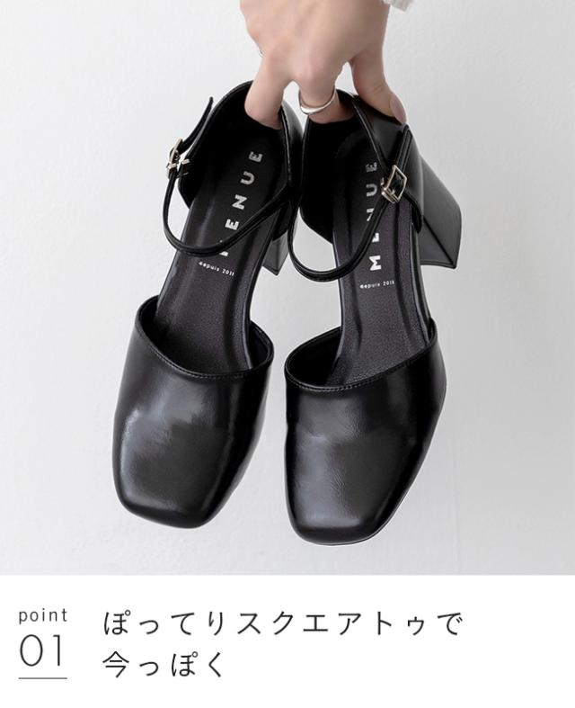 存在感のある広めのスクエアトゥは、トレンド感満点のシルエット。