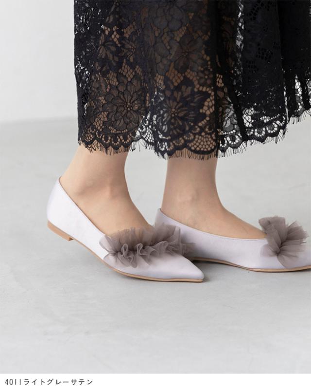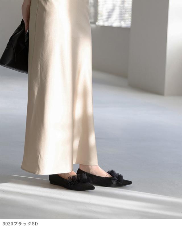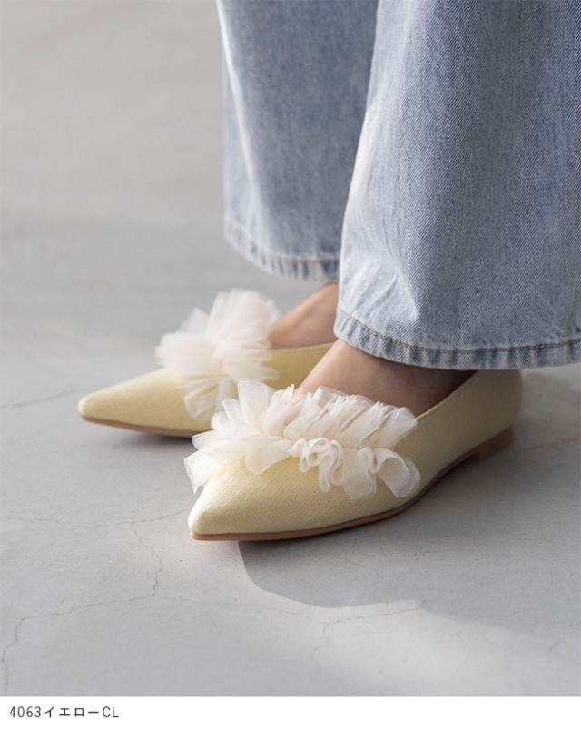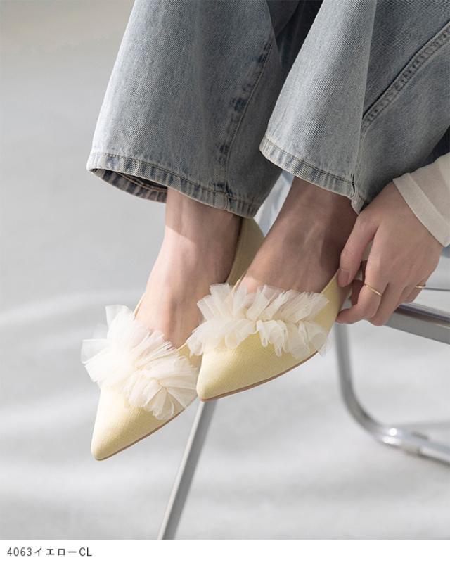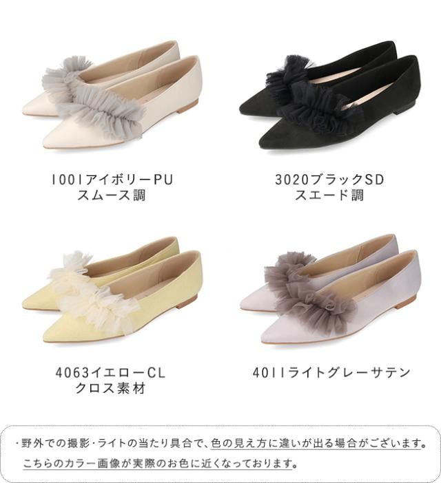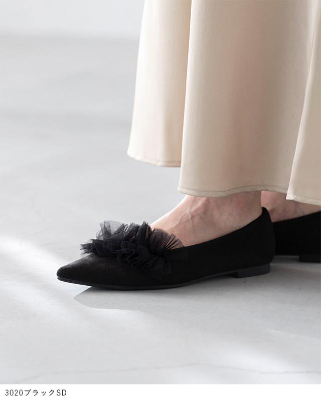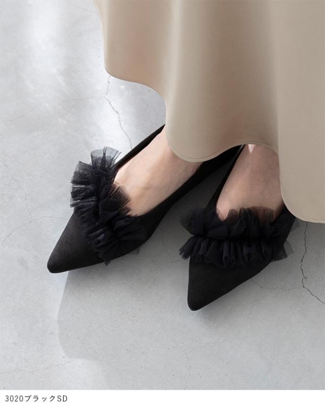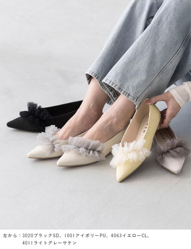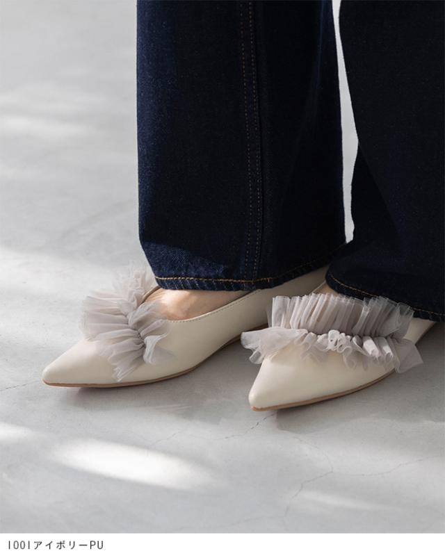 パンプス 歩きやすい 走れる 痛くない 大きいサイズ 靴 レディース 歩きやすい ぺたんこ チュール フリル 送料無料 2月20日頃発送予定