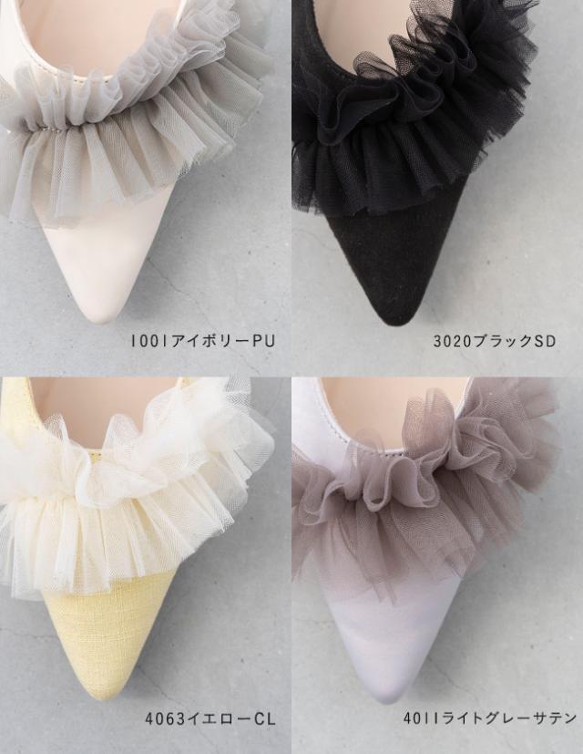 誰からも褒められる、贅沢なポインテッドトゥ チュールフリルパンプス
