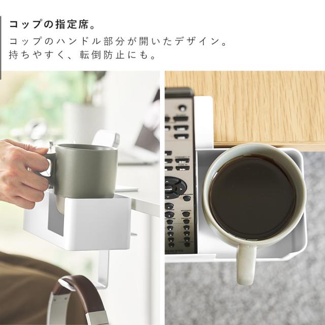 ハンドル付きのコップも安定して置けるデザインで、シリコーン製マットがキズや転倒を防ぎます。