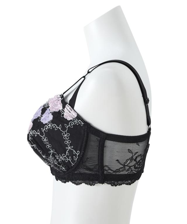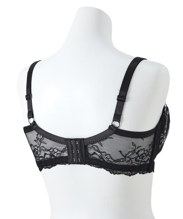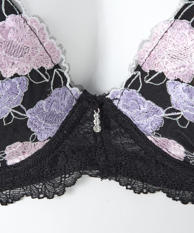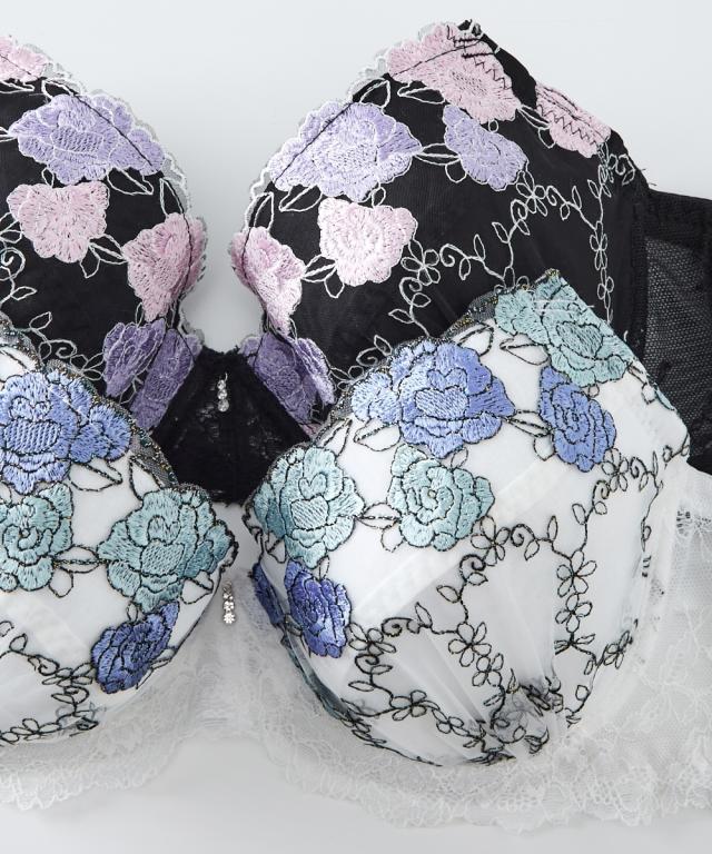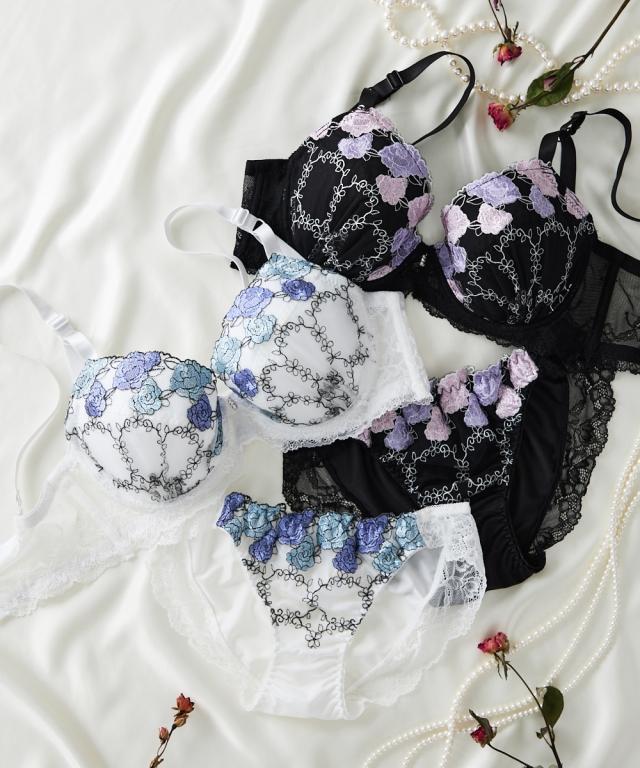 エレガントなブラ&ショーツが登場! ローズ刺繍が目を引くデザイン! 胸元のチャームでゴージャスさをプラス 脇高設計で背中からしっかり寄せこみ、美谷間&美シルエット! 幅の広い脇高設計でサイドのはみ肉をしっかりキャッチして、バストの横流れを防止してくれる脇高ブラジャー。 ブラの着用で気になる背中の段差を、脇から背中までカバーしてフラットに整えます。
