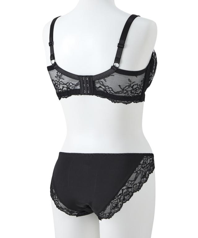 【大きい胸】脇高ゴージャスローズ刺しゅうブラジャーショーツセット(GHIカップ)