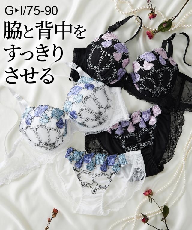 【大きい胸】脇高ゴージャスローズ刺しゅうブラジャーショーツセット(GHIカップ)