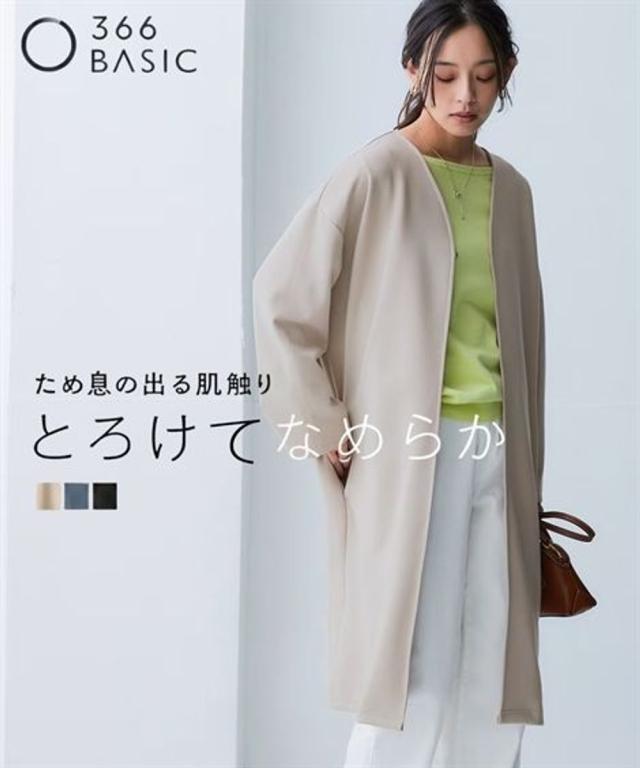なめらかポンチ素材 トッパーゆるシルエットログ丈コート