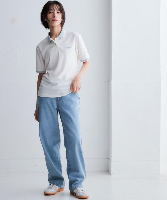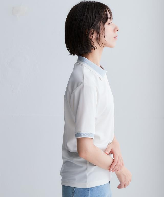 スポーツラインにオリジナルのアクティブウェアの新作登場! アクティブなシーンだけでなく、おしゃれ着としても着用できます。 ■デザイン 衿元と袖口のライン入りリブがおしゃれな快適ポロシャツ。 すっきり見える半袖丈。 長すぎず、短すぎない着丈にこだわりました。 胸元にはワンポイントの刺しゅう付き。 襟裏テープ付き。 ■素材 軽量で表面に凹凸感のある鹿の子生地なので動きやすく、快適に着用できます。 ポリエステルなのでシワになりにくく、乾きやすいため普段使いにも便利。 通気性が良く、凹凸感が肌にあたる面積を減らすので、汗をかいてもべたつきを感じにくい。 吸汗速乾機能付きなので汗をかいてもすぐに乾くのでさらっと爽やかに着用できます。 UVカット機能付きで日焼け対策もばっちり。 ジムやスポーツなどのアクティブなシーンやリラックスシーン、街中でのタウンユースコーデとしてなど幅広く着用できます。 ■コーディネート デニムやスカートなどお持ちのアイテムで簡単にコーディネートできます。